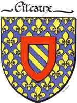 | Cîteaux D'azur semé de fleurs de lis d'or sans nombre qui est France ancien, et un écusson bandé d'or et d'azur de six pièces, à la bordure de gueules qui est Bourgogne ancien. |